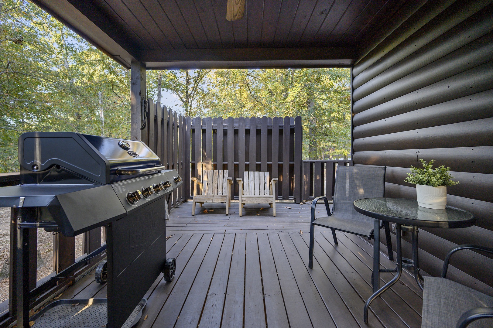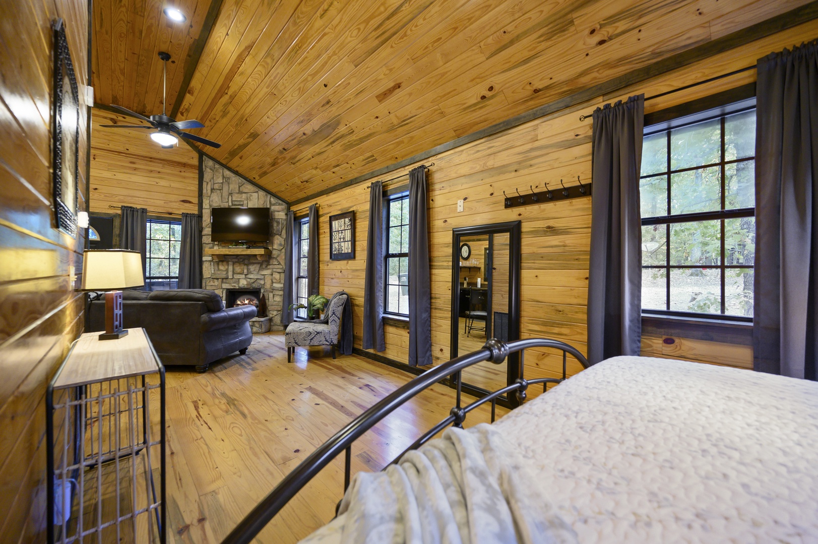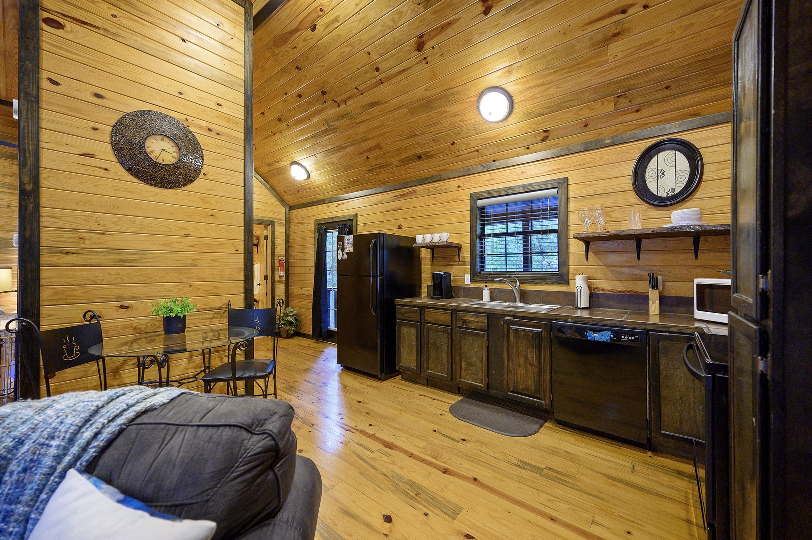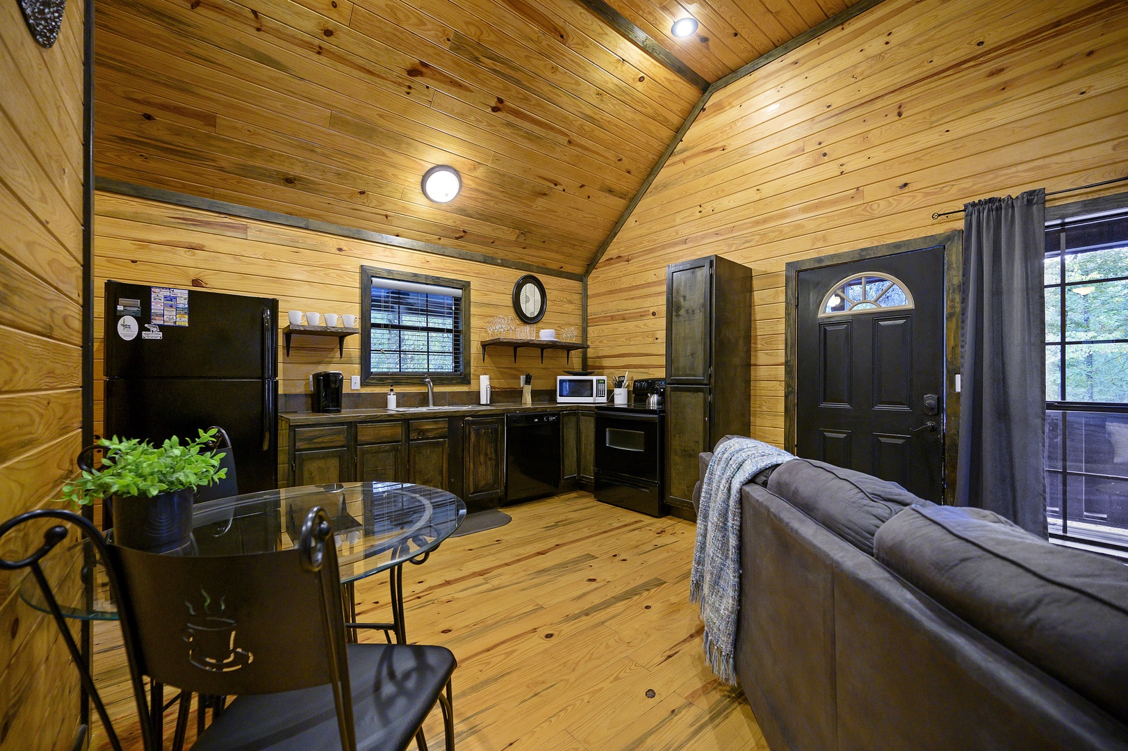 Jax Ridge is a charming studio cabin located in the heart of Hochatown. One King bed and full kitchen will provide all that's needed for a cozy stay. Relax in the hot tub or enjoy the outdoors from the deck.