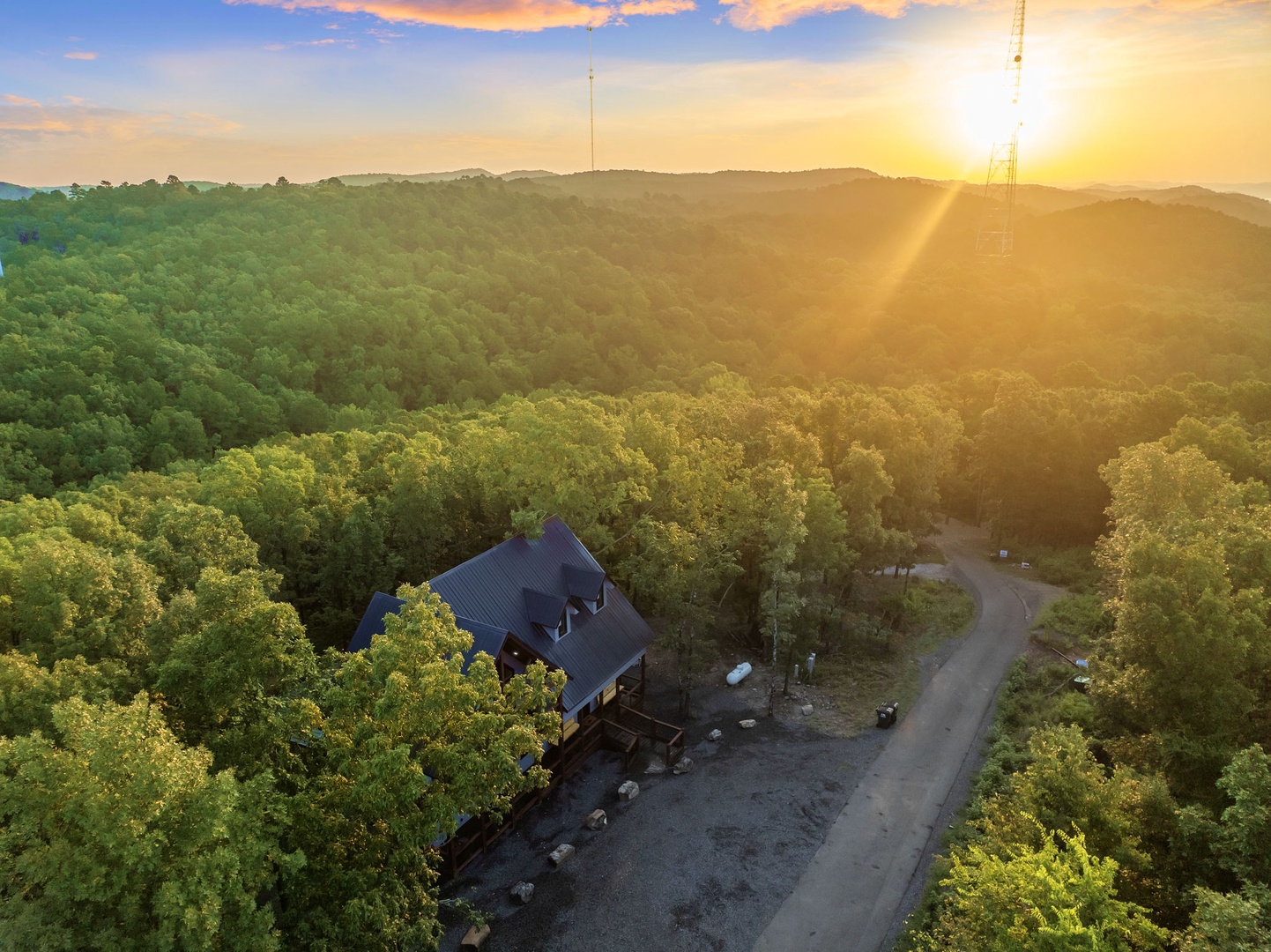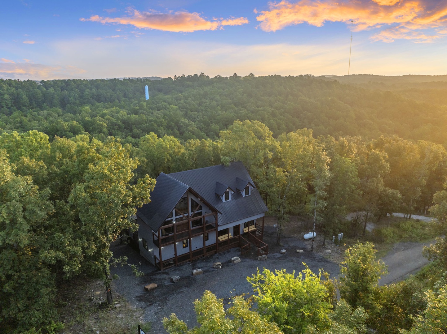 Perched atop Western Spruce Mountain, one of the highest points in Hochatown, this cozy retreat offers sweeping views and a relaxing escape for couples, small families or a close-knit groups of friends.