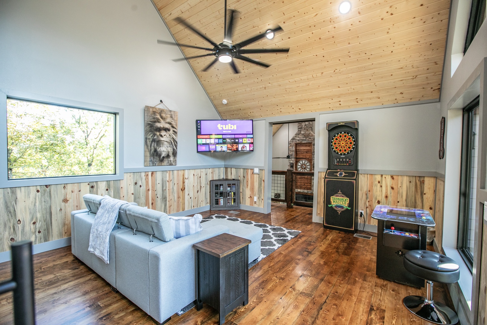 Entertainment everywhere: 4 TVs (3 inside, 1 on the back patio), plus an upstairs game room with tournament master dart game, and two person player gaming system.