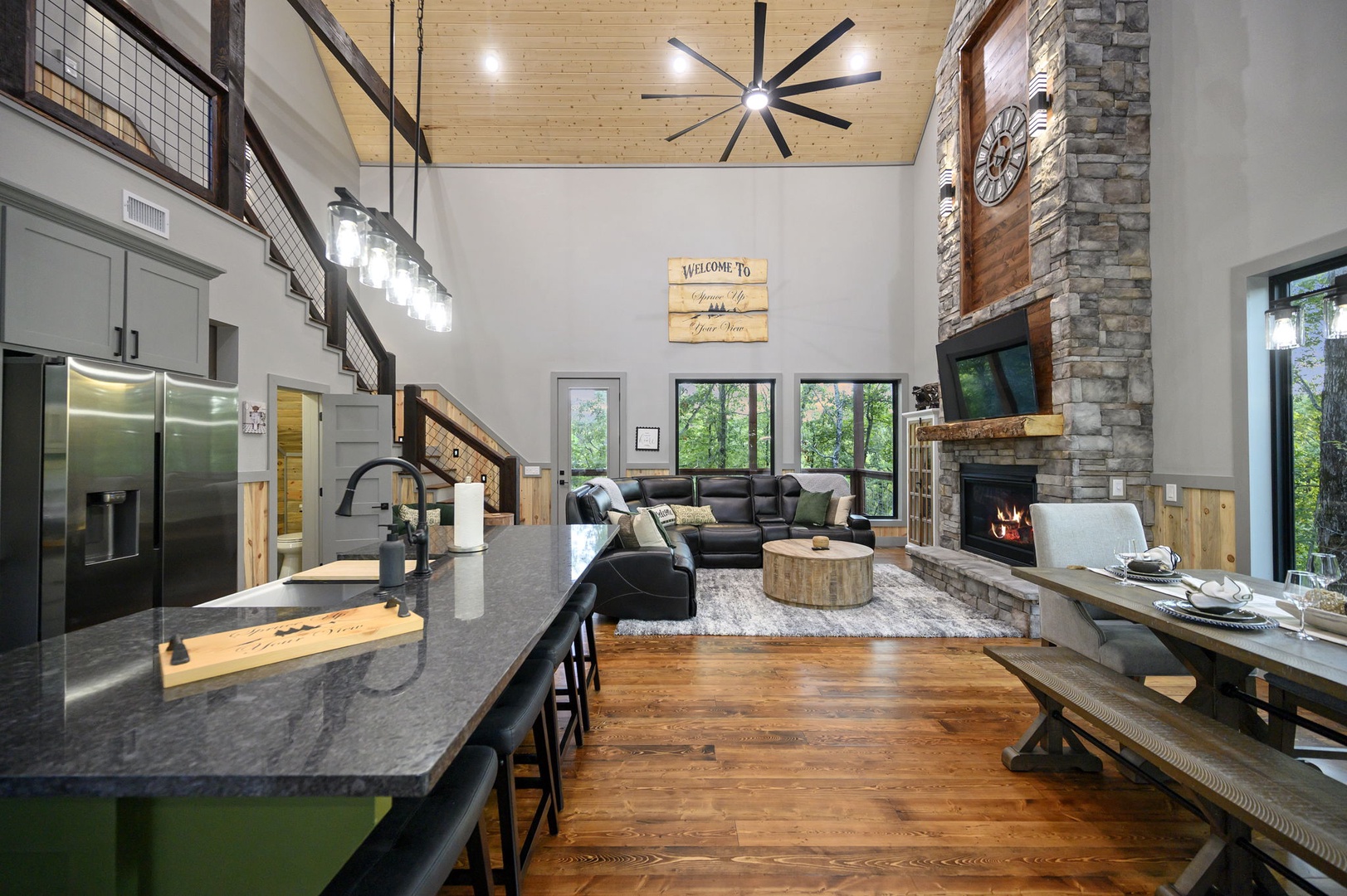 From sunrise coffee on the balcony to starlit nights in the hot tub or by the fire pit, this cabin was designed for making memories. Whether you’re gathering with family, sharing laughter with friends, or simply seeking peaceful solitude with your soulmate, “Spruce up Your View” is your elevated mountain haven.